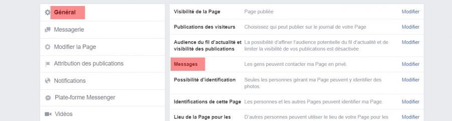 La messagerie privée de votre Page Facebook