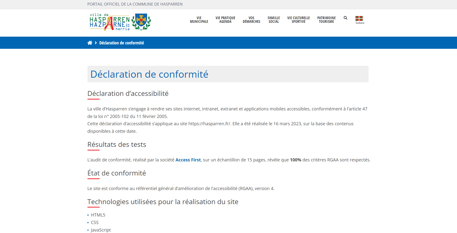 La refonte réussie du site de la commune de Hasparren, intègre des fonctionnalités d’agenda, d’annuaires, des formulaires, des cartes interactives .. et surtout, répondant aux exigences d’accessibilité, a été un franc succès. Grâce à cette refonte, la commune peux offrir une expérience utilisateur améliorée à ses visiteurs, y compris les personnes souffrants de handicap permanents ou temporaires.
